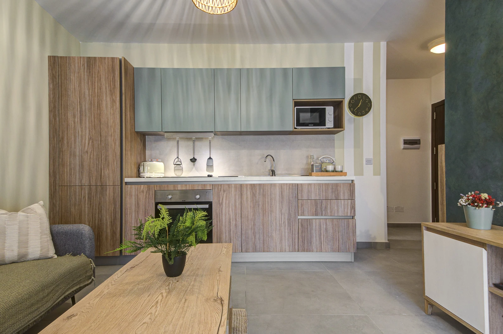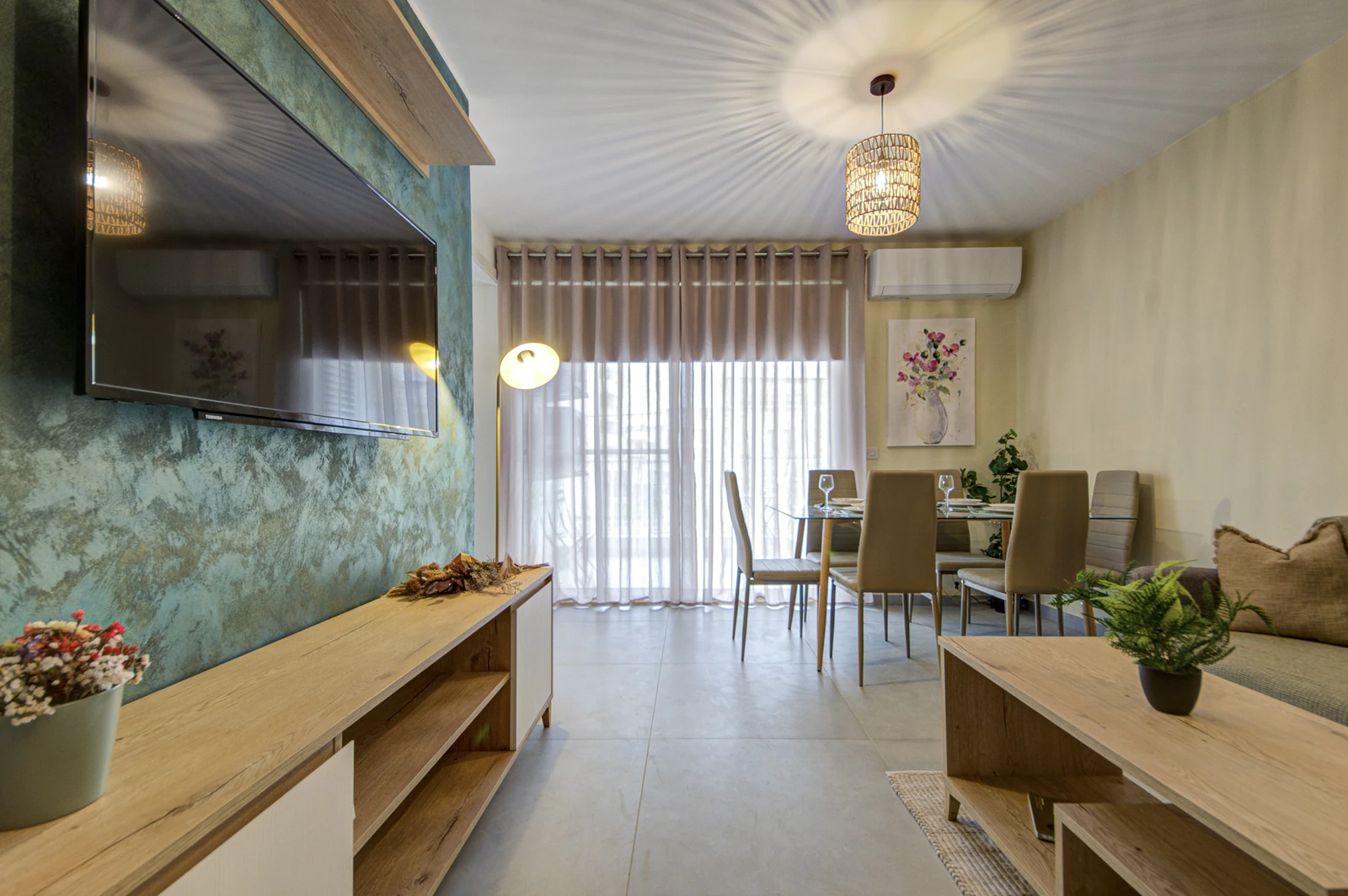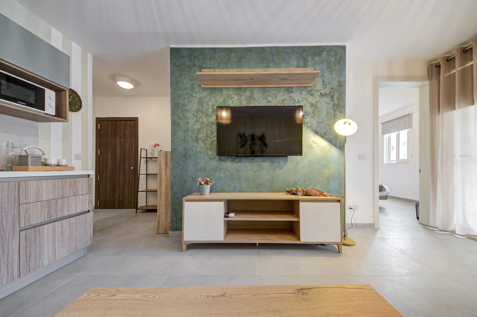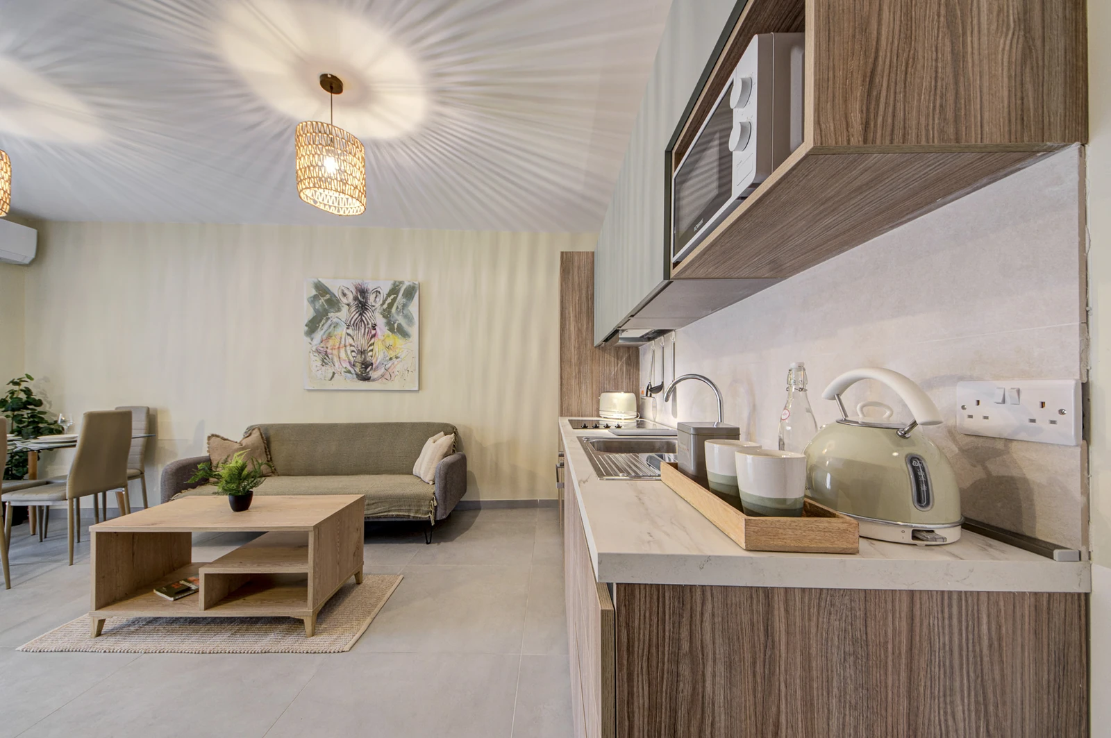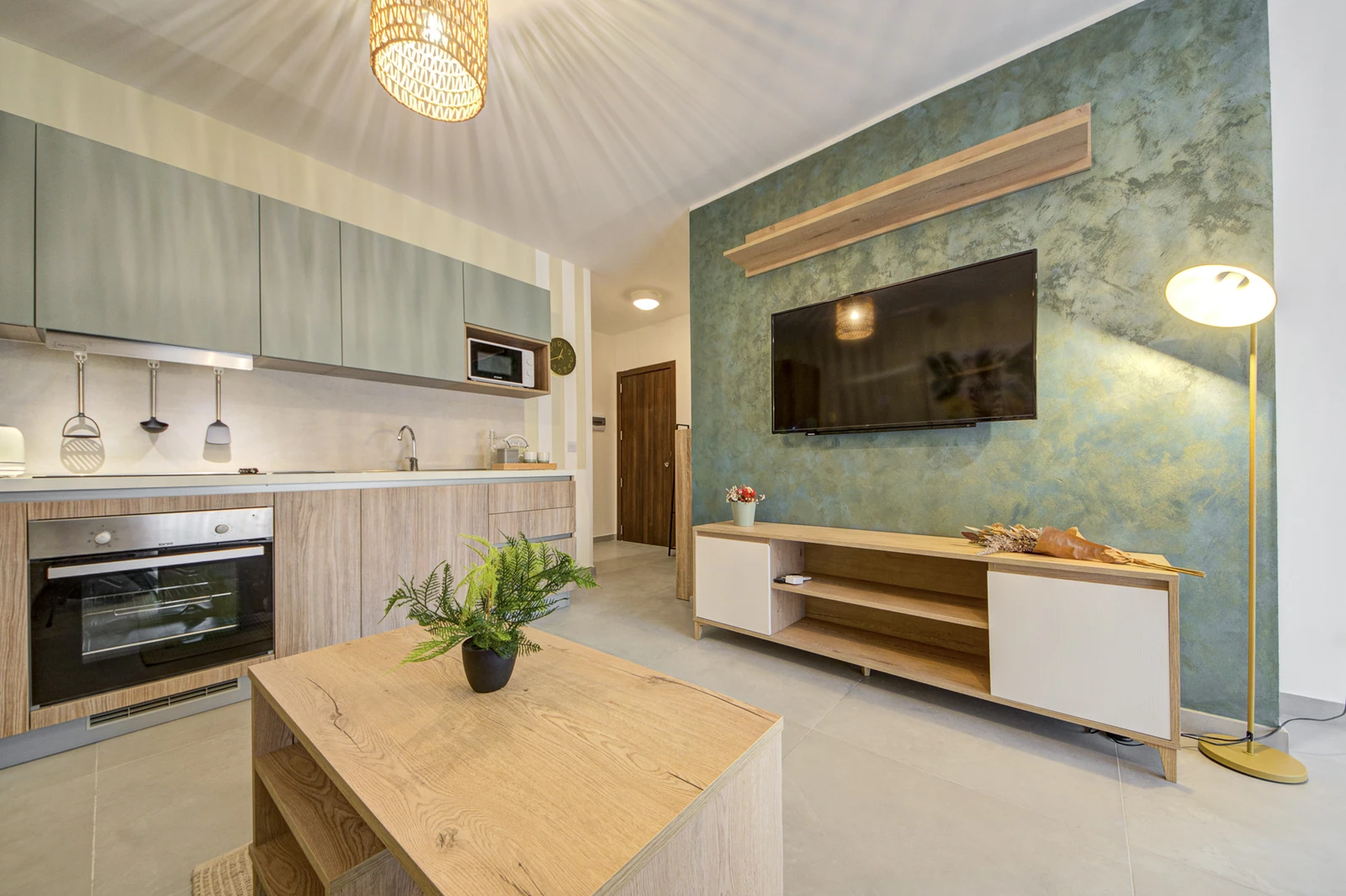 Apartments range from 55 to 85 sqm and include open-plan layouts, private balconies or terraces, lift access, air-conditioned living areas, and secure intercom entry. Most units offer en-suite and guest bathrooms. Finished to high standards, each home features modern tile flooring, built-in kitchen appliances, double-glazed windows, and energy-efficient lighting, all wrapped in a clean, neutral aesthetic tailored for comfortable, long-term living.