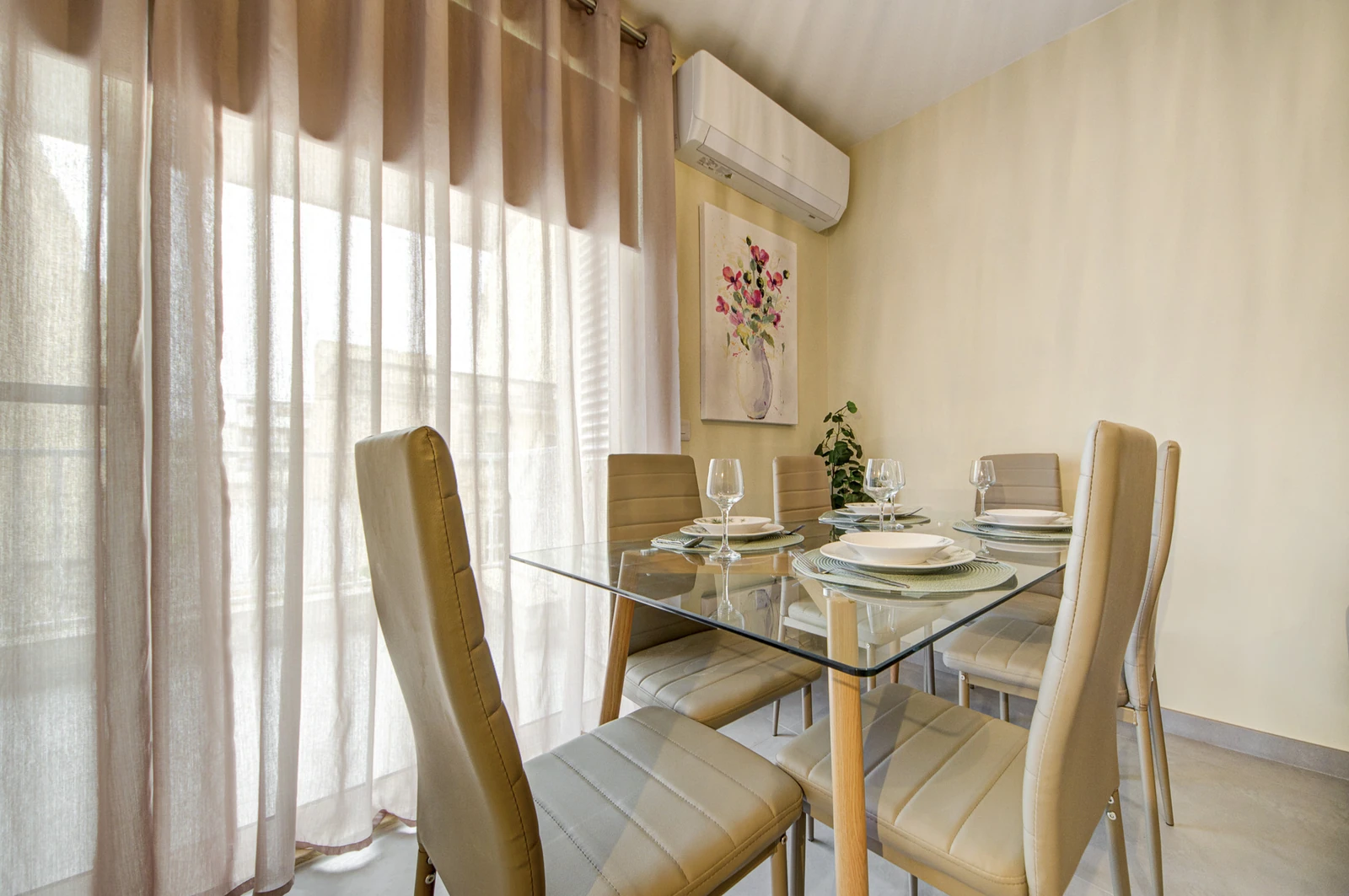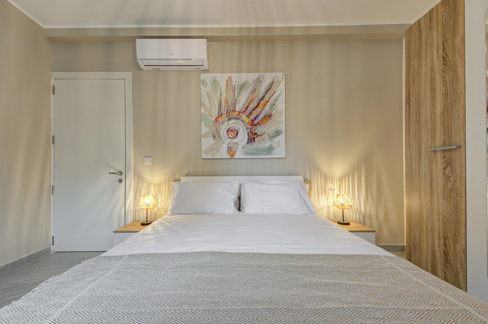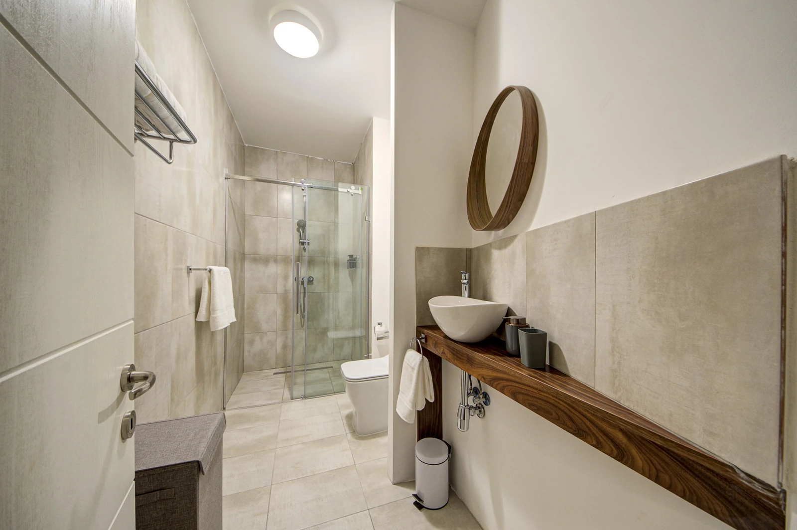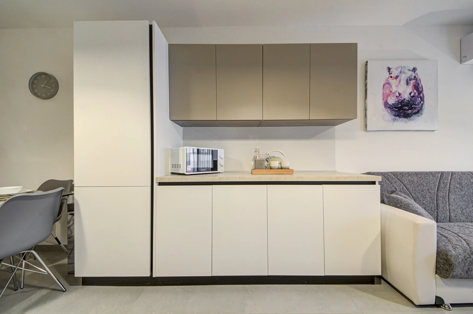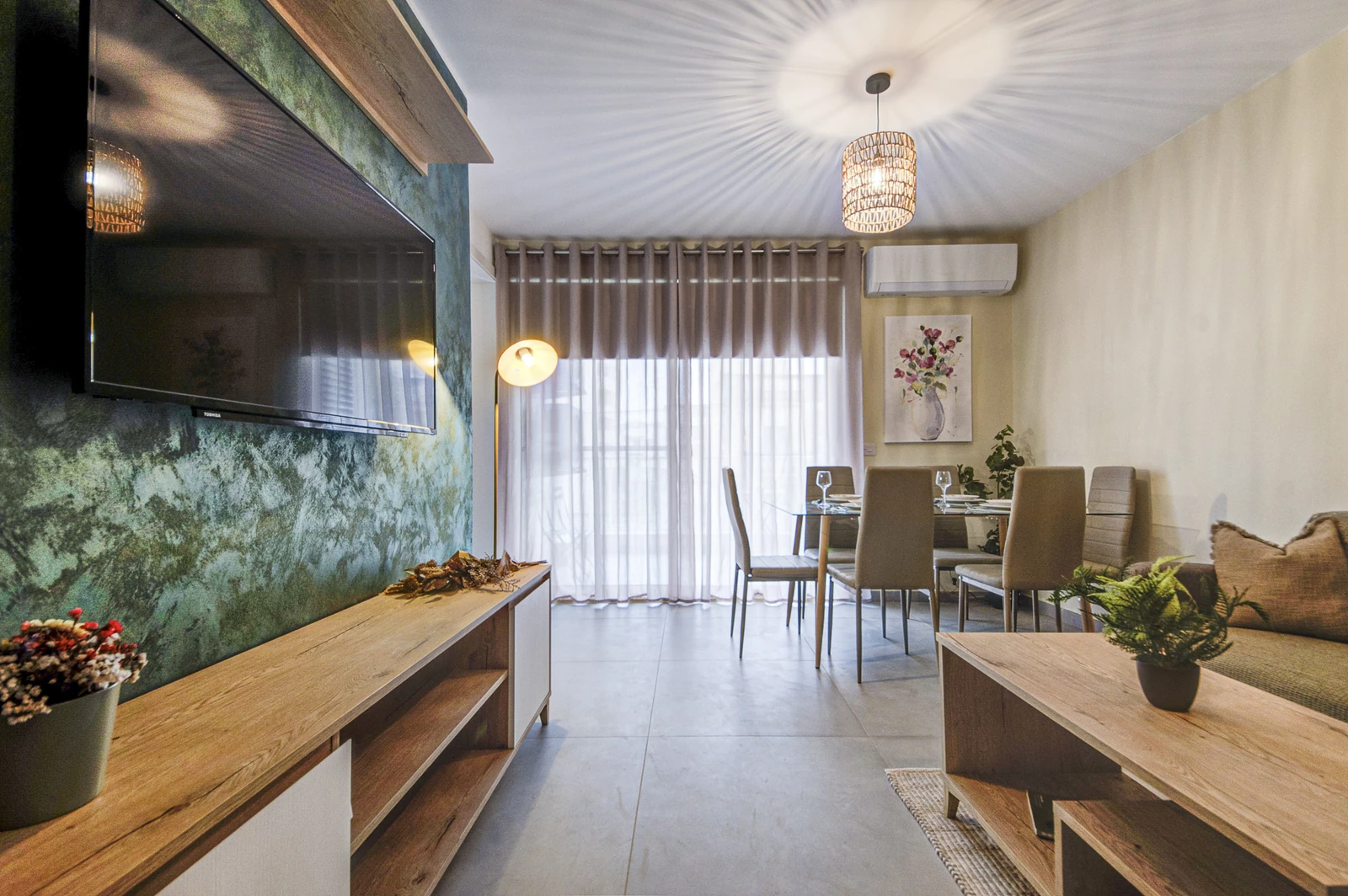 Apartments range from 55 to 85 sqm and include open-plan layouts, private balconies or terraces, lift access, air-conditioned living areas, and secure intercom entry. Most units offer en-suite and guest bathrooms. Finished to high standards, each home features modern tile flooring, built-in kitchen appliances, double-glazed windows, and energy-efficient lighting, all wrapped in a clean, neutral aesthetic tailored for comfortable, long-term living.