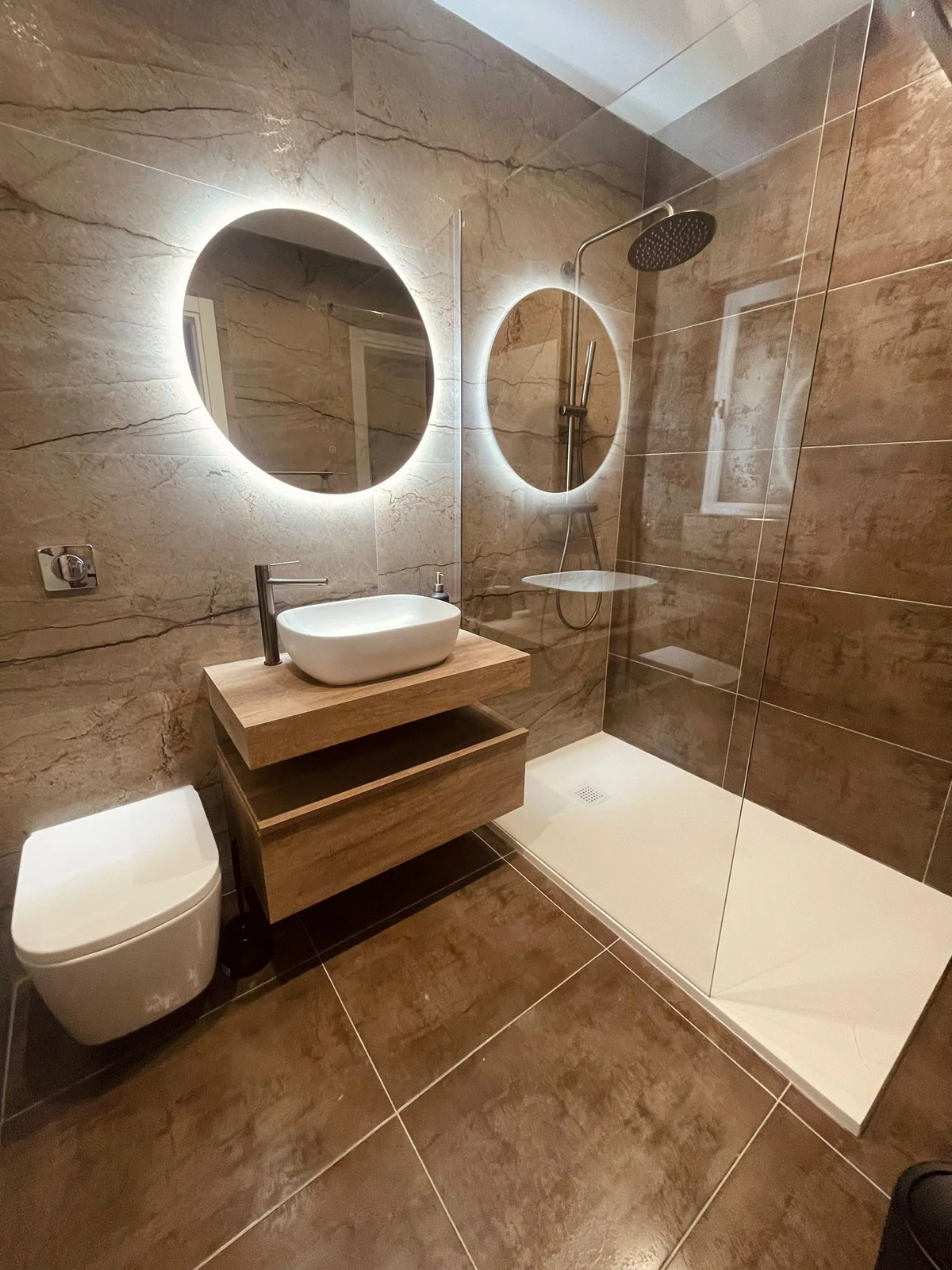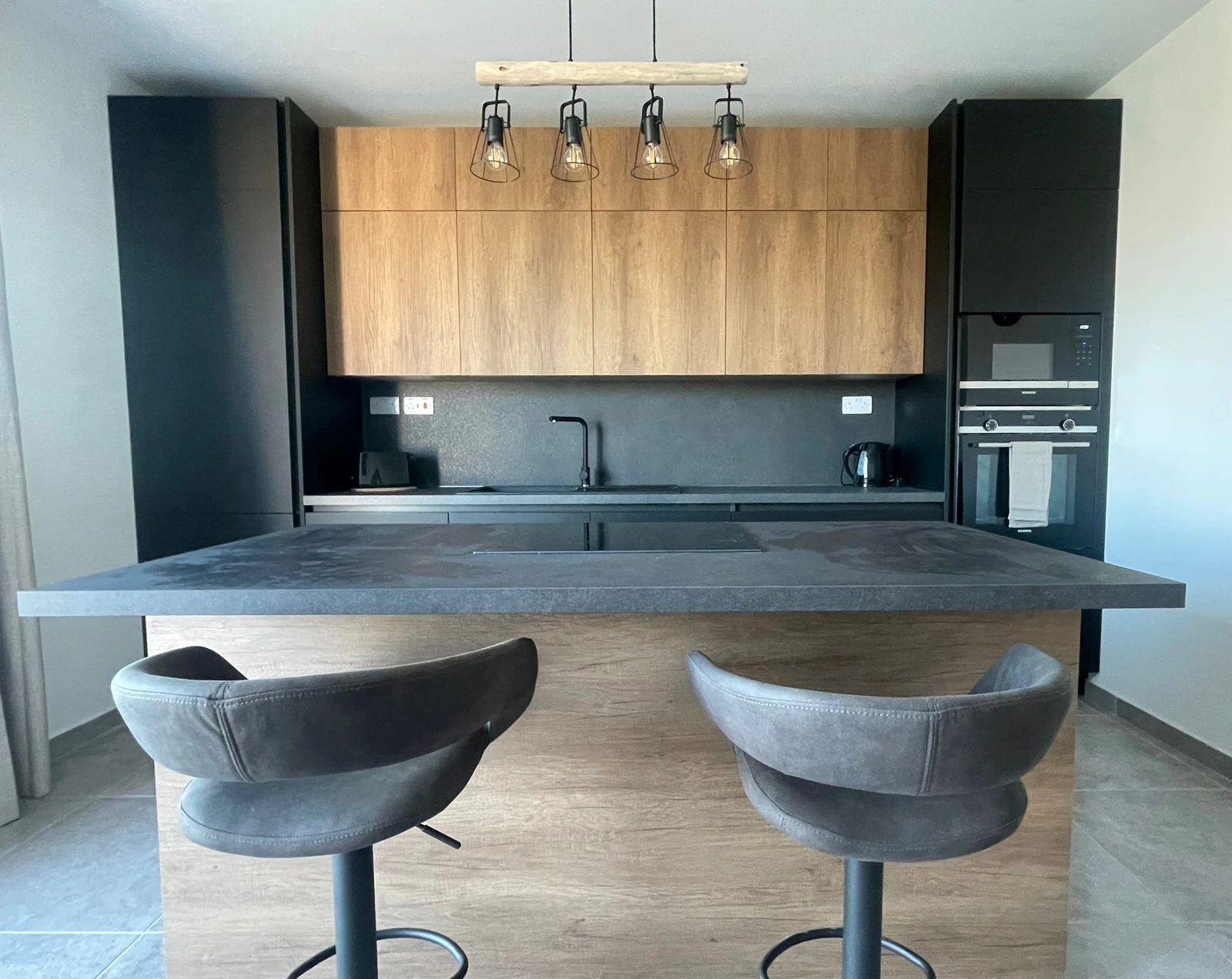 Each apartment includes lift access, with select units enjoying private terraces. Optional garages were also made available. Units range from 100–120 sqm. Apartments are finished to a high standard with modern flooring, fully fitted kitchens, air-conditioning, double-glazed apertures, and quality fixtures.